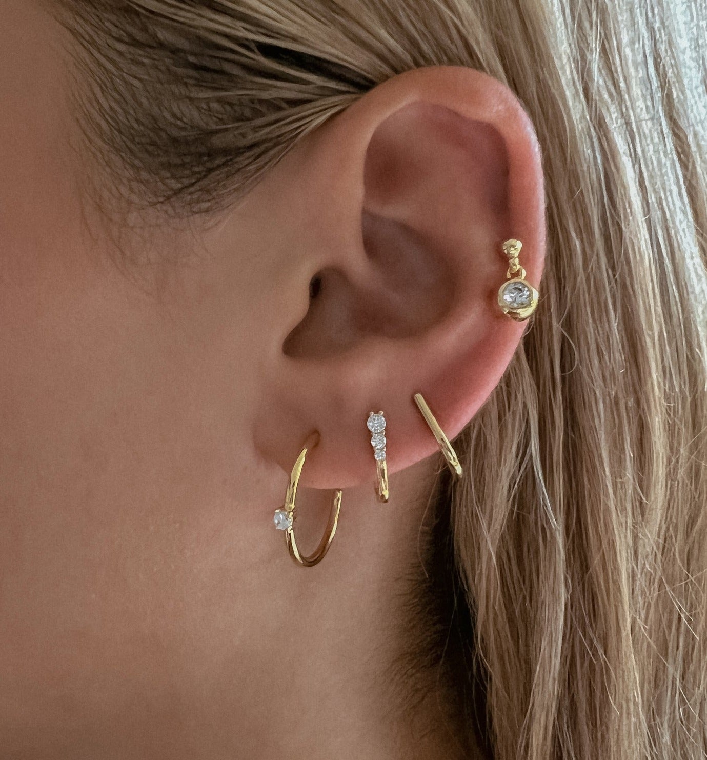 The partner in crime to our original Livia Hoops, these tiny alternatives feature the same dainty design and nano-crystal highlight. Wear them alone or add them to your ear party along with our other hoops.